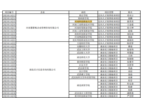 近日,教育部高校学生司发布了《关于第二期供需对接就业育人项目立项名通知》(教学司函(2023]6号),经高校申请、用人单位申报、专家审核、立项单位信息核查等环节,我校经济与管理学院与河南慧算账企业管理咨询有限公司联合申报的“定向人才培养培训项目”,获批确定为教育部高校学生司第二期供需对接就业育人项目。