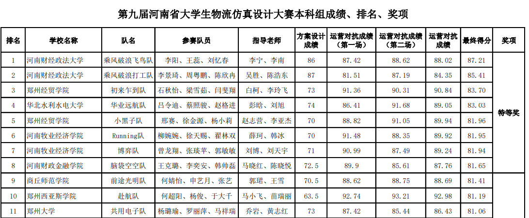 近日,由河南省物流协会主办的第九届河南省大学生物流仿真设计大赛暨“百蝶杯”第八届全国大学生物流仿真设计大赛河南省选拔赛圆满结束。经济与管理学院本科组、高职高专组双双获奖。其中,高职高专组获得特等奖并入围国赛、本科组获得一等奖,取得近年参加此项赛事以来我校最佳成绩。