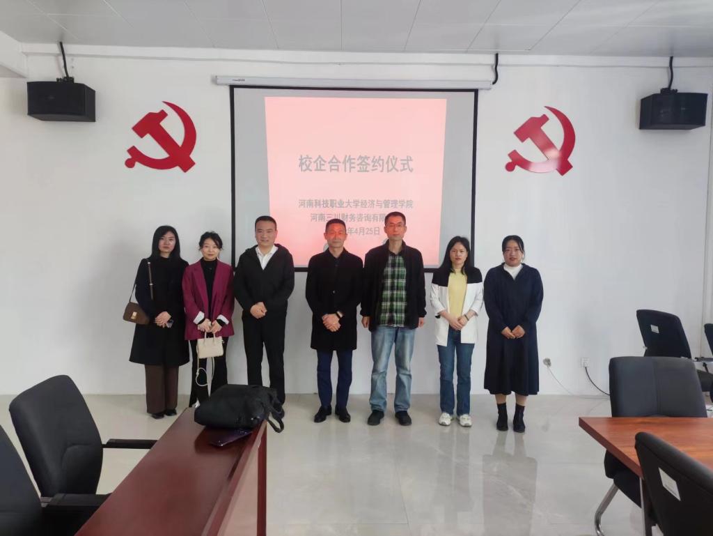 4月25日上午,河南科技职业大学经济与管理学院与河南三川财务咨询有限公司正式签订了校企合作协议。此次合作旨在加强学院与企业之间的联系,提高学生的实践能力和就业竞争力,为学生的职业发展提供更加广阔的平台。