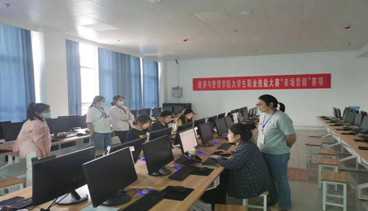 根据校级比赛对接省赛要求以及学校发布的《2023年全国职业技能大赛赛项规程与赛题》文件,我院市场营销专业符合市场营销赛项要求。经过对全院市场营销专业学生宣传推广,有25名学生报名参加了市场营销技能大赛。学院首先进行了初赛的选拔,最终选出了10名学生进入了决赛。根据比赛日程的安排, 6月7日下午由李明明、刘坤、夏慧芳、梁淑慧、倪金升、王明明老师担任市场营销评委,对参加决赛的学生进行打分。在决赛期间,学校实训中心王秋锋主任及其他学院的裁判老师亲临现场进行了指导和点评。