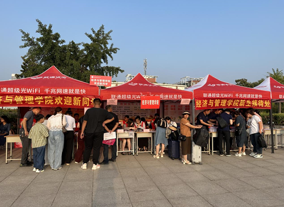 九月,是一个孕育着希望的起点,是一个放飞梦想的时节,经济与管理学院迎来了2023届充满了青春活力的新生,与此同时,迎新工作在9月9号上午正式拉开帷幕,九月的骄阳似火,却丝毫不减迎新同学的热情。经济与管理学院团总支和学生会干部及志愿者们分为校外接站人员人,门口接待处,校内引导人员,登记宿舍人员、校内报道登记信息,沁园接待处分别接待新生,帮忙搬运行李,帮助新生顺利完成报到工作,并积极解决新生遇到的各种问题,使他们感受到了来自院领导、老师、学长、学姐的亲切关怀。