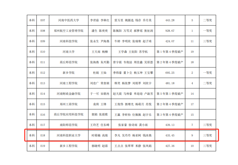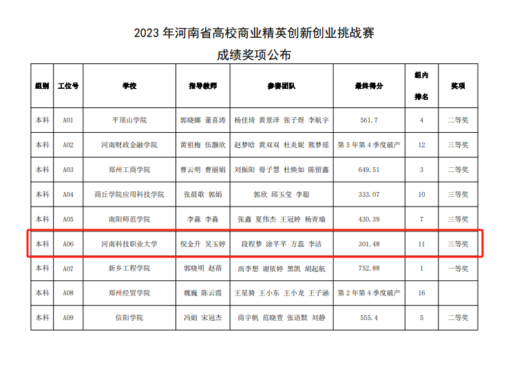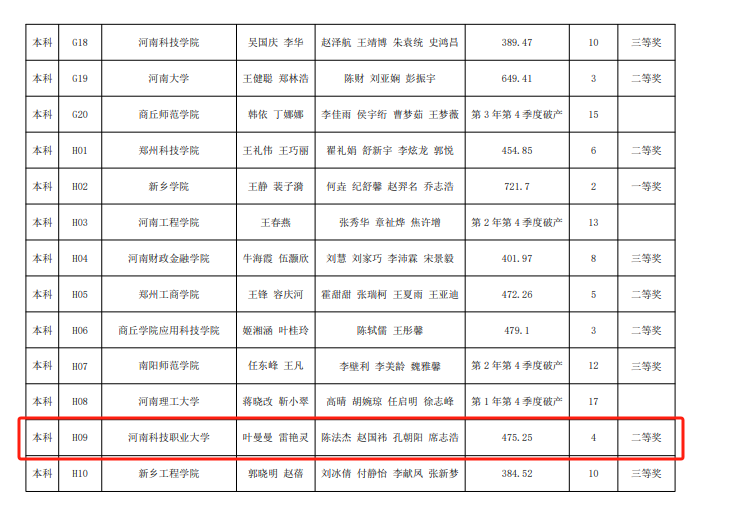 经济与管理学院在2023年河南省高等教育学会主办的河南省高校商业精英创新创业挑战赛中取得的优异成绩。此次竞赛我院共荣获省级一等奖2项,二等奖1项和三等奖3项,展现出我院在商业创新领域的卓越实力。