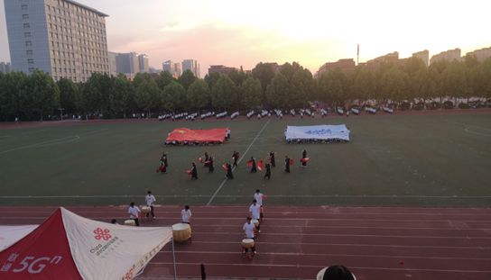 汇演报告环节,经济与管理学院是第二个出场表演。此次表演由《九州同》舞蹈表演人员和一二百名啦啦操表演人员组成,参与表演的同学服装统一,古典舞蹈人员身穿黑色舞蹈长裙;敲鼓及啦啦操队员皆穿白色短袖和黑色长裤。音乐《九州同》响起,表演的鼓声紧随其后,随着音乐古典舞蹈人员翩翩起舞,大气磅礴。啦啦操舞蹈方阵带来的《我的未来式》更是让操场变得青春洋溢。此次运动会,我院共上场运动员几十余名,参加项目涉及120项,我院秉持着“友谊第一,比赛第二”的运动精神,希望我院运动员能够在这次运动会中取得优异的成绩。