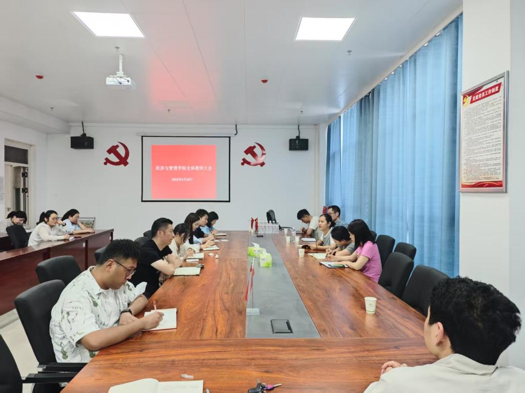 为全面落实学校教学管理要求,强化教学过程监控,推动人才培养质量提升,经济与管理学院于2025年4月29日召开全体教师会议,系统总结期中教学检查工作成果,并针对现存问题提出改进方案。会议由学院院长王成主持,院党委书记王力伟、副书记牛永伟、副院长郭秀英、刁雪影,各教研室主任和专任教师参会。