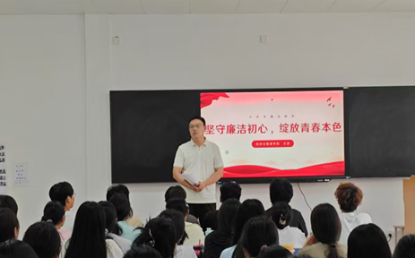 2025年6月3日,经济与管理学院在综合教学中心310开展“坚守廉洁初心,绽放青春本色”专题讲座。本次讲座由学院党委副书记王波主讲,团学干部及各班班长参与学习,共筑青年廉洁思想防线。