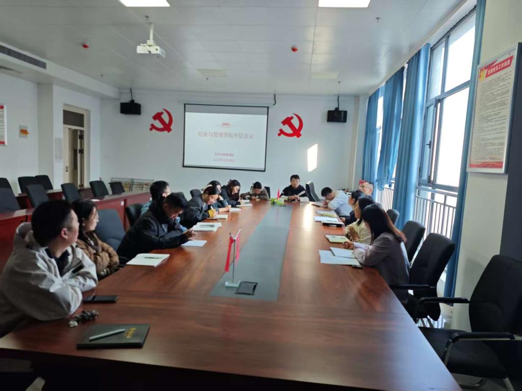 2025年10月28日下午,经济与管理学院在综合教学楼809室召开中层会议,学院中层领导出席会议,会议由王成主持。本次会议围绕教学科研、学生实习、教学管理、职称评审等核心工作展开多维度部署,为学院下一阶段发展明确方向、夯实路径。