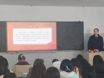 本次“领导干部上讲台”专题授课,既是一次深刻的思想引领,也是一次生动的文化教育,取得了显著成效。同学们纷纷表示,通过授课对社会主义文化强国建设有了更全面的认识,深刻感受到青年一代肩负的文化使命,进一步增强了文化自信和民族自豪感。 授课结束后,学院党委副书记对活动进行总结。他强调,文化强国建设不是一句口号,而是需要每一位青年脚踏实地的行动。希望全院学生以此次授课为契机,将文化自信融入学习成长全过程,把专业学习与文化建设相结合,在传承中创新、在实践中担当,努力成为兼具专业素养与文化底蕴的新时代青年。