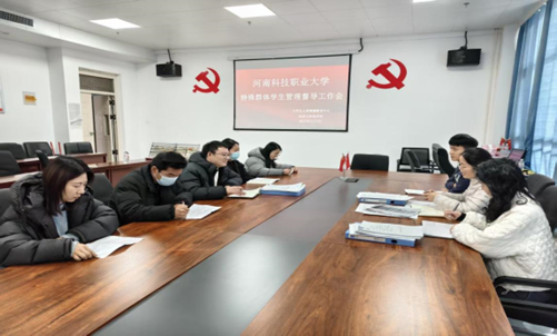 为进一步开展特殊学生管理工作,河南科技职业大学大学生心理健康中心于2025年12月4日对经济与管理学院心理辅导站工作进行督导和检查。学生处处长尚德山、副处长牛永伟、经济与管理学院副书记王波出席会议,经济与管理学院辅导员参加本次会议。