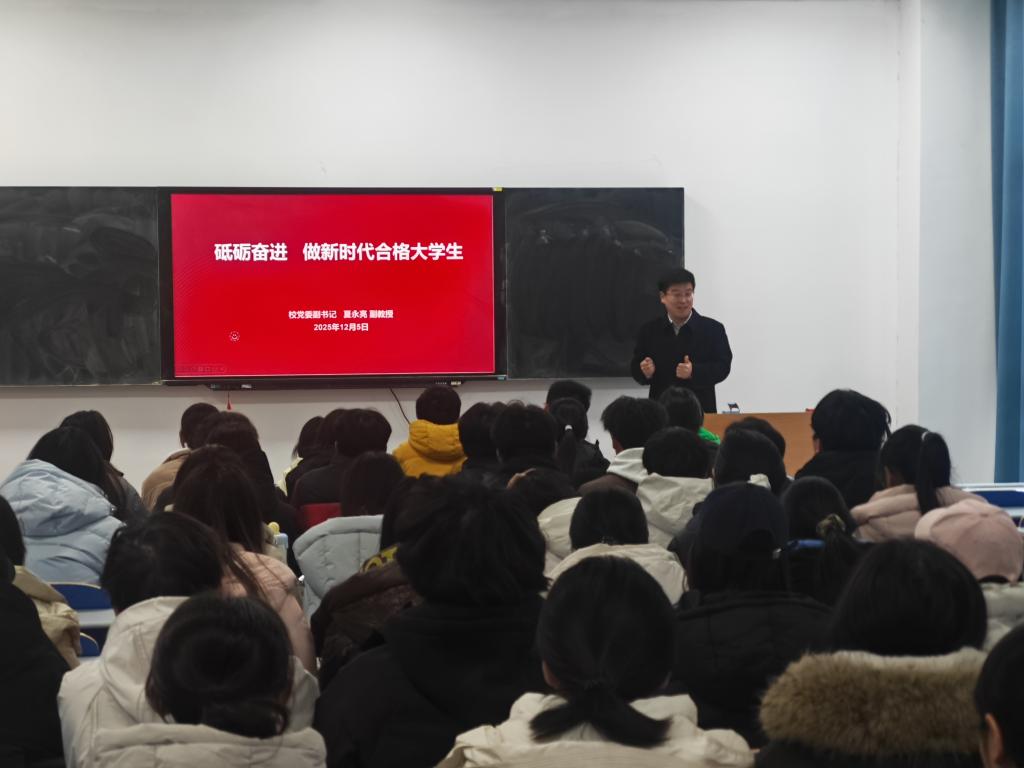 “认识时代、学习榜样,最终要落脚到知行合一的实践中。”在阐述“砥砺奋进的实践路径”时,夏永亮副书记为学生提出具体要求:要在勤学深思中筑牢根基,静心读书、独立思考,构建合理知识结构;在实践锻炼中锤炼本领,投身实习、志愿服务与学科竞赛,在基层一线增长才干;在修身立德中提升境界,践行社会主义核心价值观,从点滴小事涵养高尚品格;在勇于创新中敢为人先,打破思维定势,利用学校平台探索未知;在坚定信念中把准航向,深化对“四个自信”的理解,将个人理想融入国家民族事业。