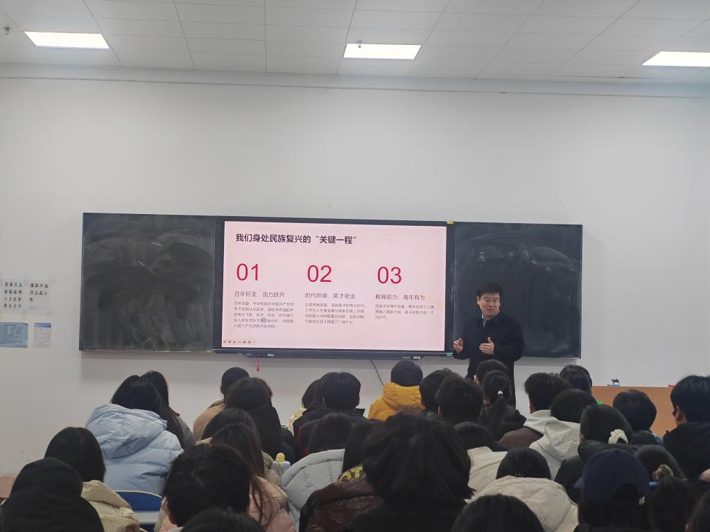 课堂上,夏永亮副书记首先围绕“深刻把握时代坐标”展开论述,带领学生认清所处的历史方位与青春责任。他指出,当前中华民族正处于伟大复兴的“关键一程”,青年学生的人生黄金期与国家发展“上升期”、民族复兴“冲刺期”高度重合,既是幸运更是责任;面对世界百年未有之“大变局”,科技与人才竞争日趋激烈,需要大学生以全球视野和战略眼光夯实本领,在关键领域突破“卡脖子”难题;而建设社会主义现代化强国的“历史重任”,更要求青年在高质量发展、乡村振兴、文化自信、全球治理等各领域主动作为,在时代舞台上绽放光彩。