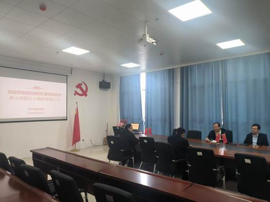 为深入学习贯彻习近平总书记关于树立和践行正确政绩观的重要论述,推动学习教育走深走实,2026年4月16日,学校党委组织部部长门立志、校纪委副书记陈建辉莅临经济与管理学院,对我院树立和践行正确政绩观工作开展专项检查指导。学院领导班子成员参加检查汇报会。