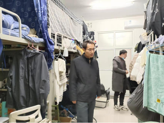 每到一间宿舍,王力伟书记都会与同学们亲切交谈。王书记仔细询问了同学们近期的生活和学习情况,认真听取大家对学院教育教学和发展建设的意见和建议,并表示学院会不断为同学们创造良好的学习生活环境,努力解决大家在日常学习生活中的实际问题。王书记语重心长地提醒同学们,在校期间要高度重视疫情防控工作,按时打卡,注意宿舍用电安全和饮食卫生做好个人防护。王书记叮嘱室友之间要互相关心、互相帮助,嘱咐大家“有困难要多和辅导员沟通”,勉励同学们积极进取,扎实学习专业知识,拼搏成就美好未来。随行辅导员老师们也叮嘱同学们要积极调整好状态,尽快投入期末复习中去,要提高安全防范意识,特别要警惕网络电信诈骗和传销陷阱。室友之间不仅要在生活上团结互助,在学习上也要互相督促鼓励。
